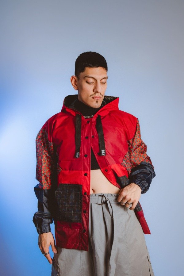 Campera hecha a mano con paraguas recuperados, única e irrepetible, sin género.