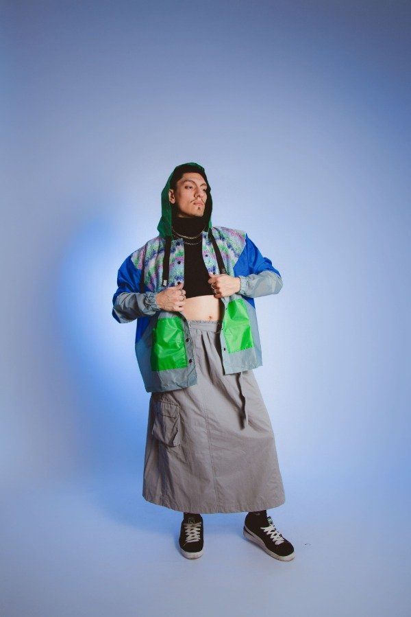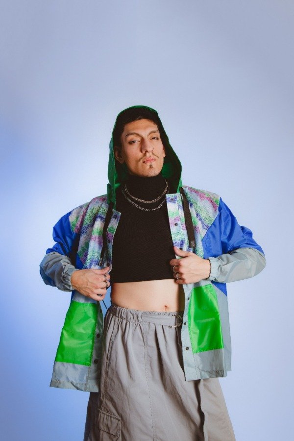 Campera hecha a mano con paraguas recuperados, única e irrepetible, sin género.