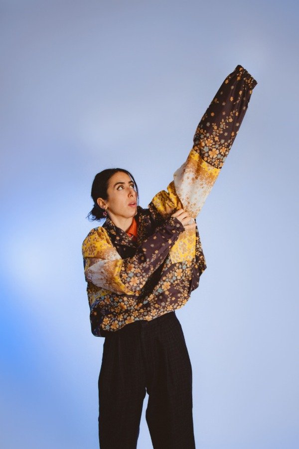 Buzo hecho a mano con paraguas recuperados, único e irrepetible, sin género.