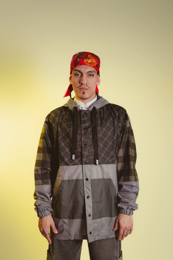 Campera hecha a mano con paraguas recuperados, única e irrepetible, sin género.