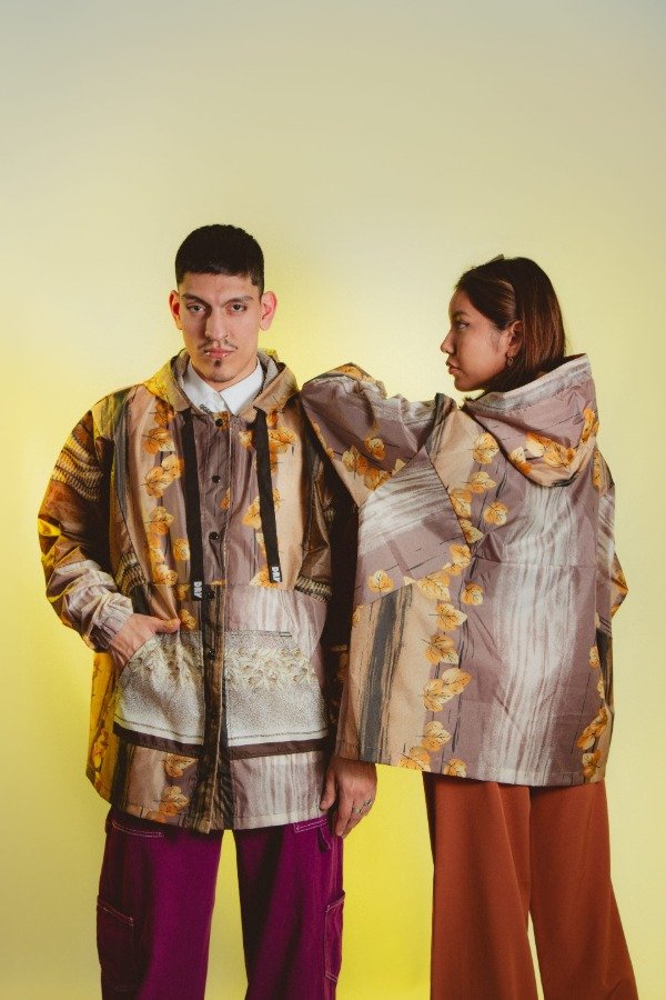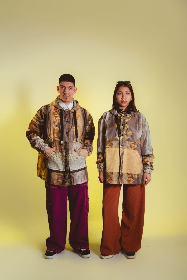 Campera hecha a mano con paraguas recuperados, única e irrepetible, sin género.